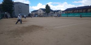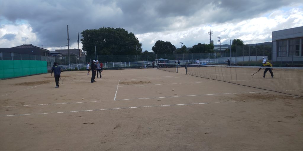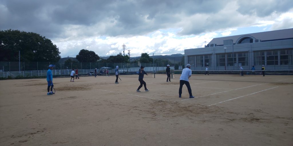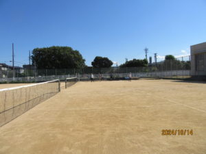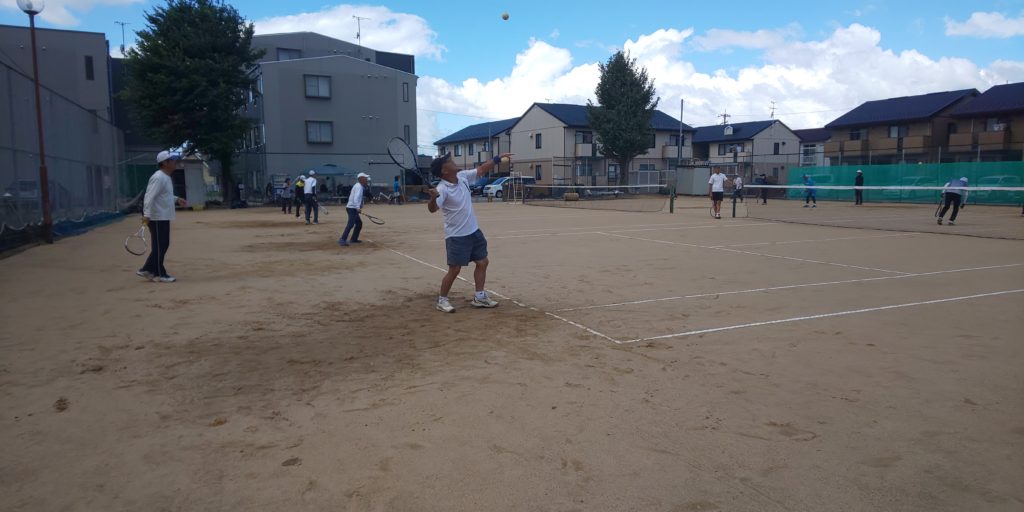 晴れの日が続く、連休最終日でもあったが、三納公園コートに多くの仲間が集まってきた。今日来たのは、大杉、郷家、川崎、櫻井兄、弟、松山、塩木、安江、番井、蔵、干場、伊藤、武部、盛重、堀、蒲田、米田、鍬田、米光、藤田、西涼 本間、新森、新田(24人)