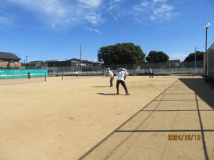 週の後半は、秋晴れが続いたし、気温がスポーツに望ましい温度まで下がってきた。今日来たのは、櫻井、西涼、郷家、堀、下畠、松山、塩木、新田、高橋、本間、森親子、北野親子、ジュニア女子1人、小寺、多村、新森