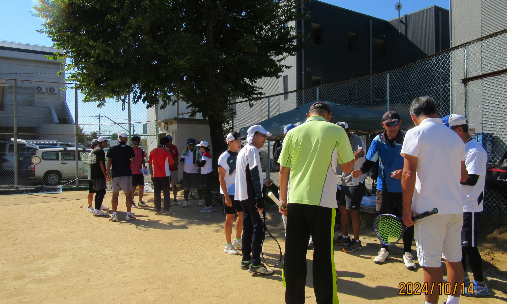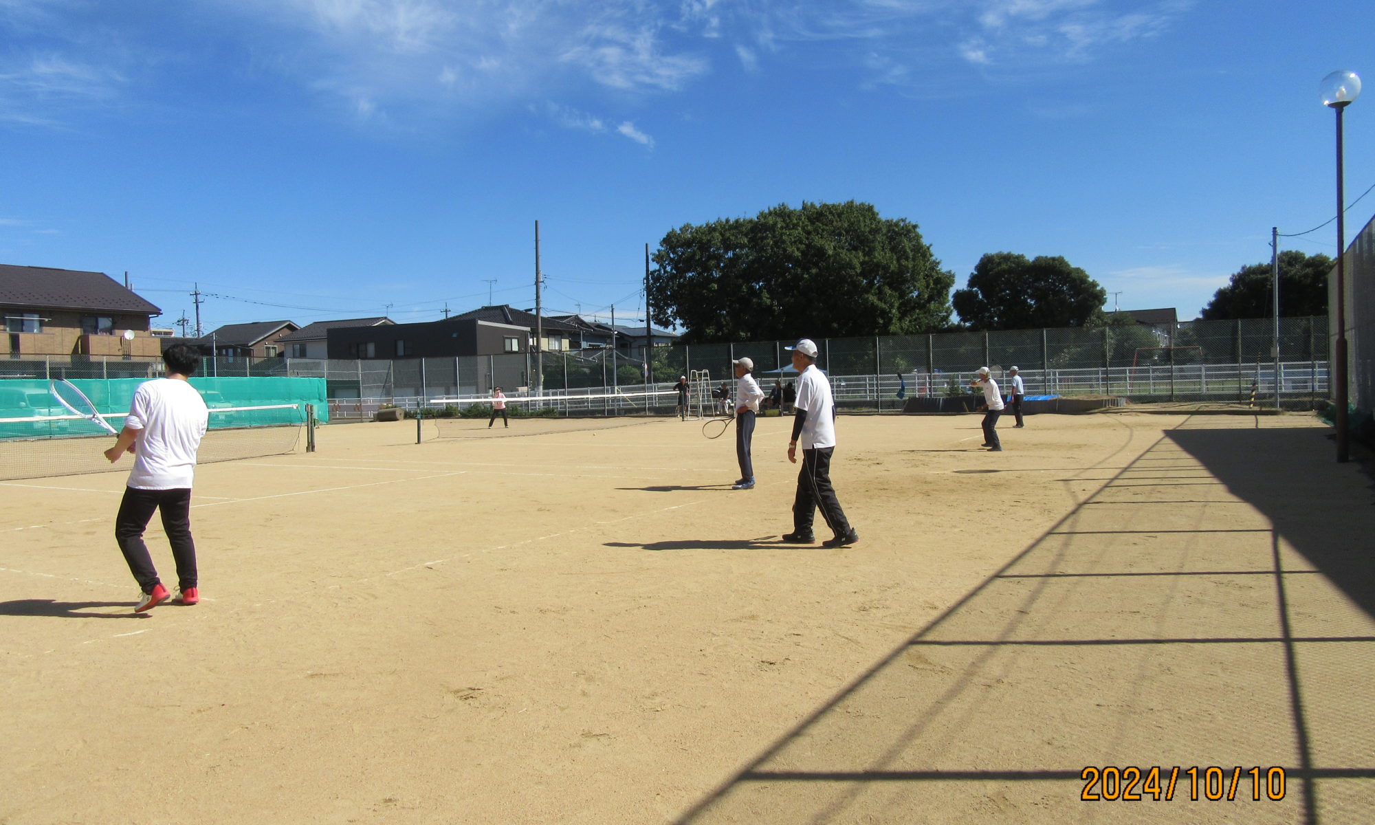 晴れの日が続く、連休最終日でもあったが、三納公園コートに多くの仲間が集まってきた。今日来たのは、大杉、郷家、川崎、櫻井兄、弟、松山、塩木、安江、番井、蔵、干場、伊藤、武部、盛重、堀、蒲田、米田、鍬田、米光、藤田、西涼 本間、新森、新田(24人)