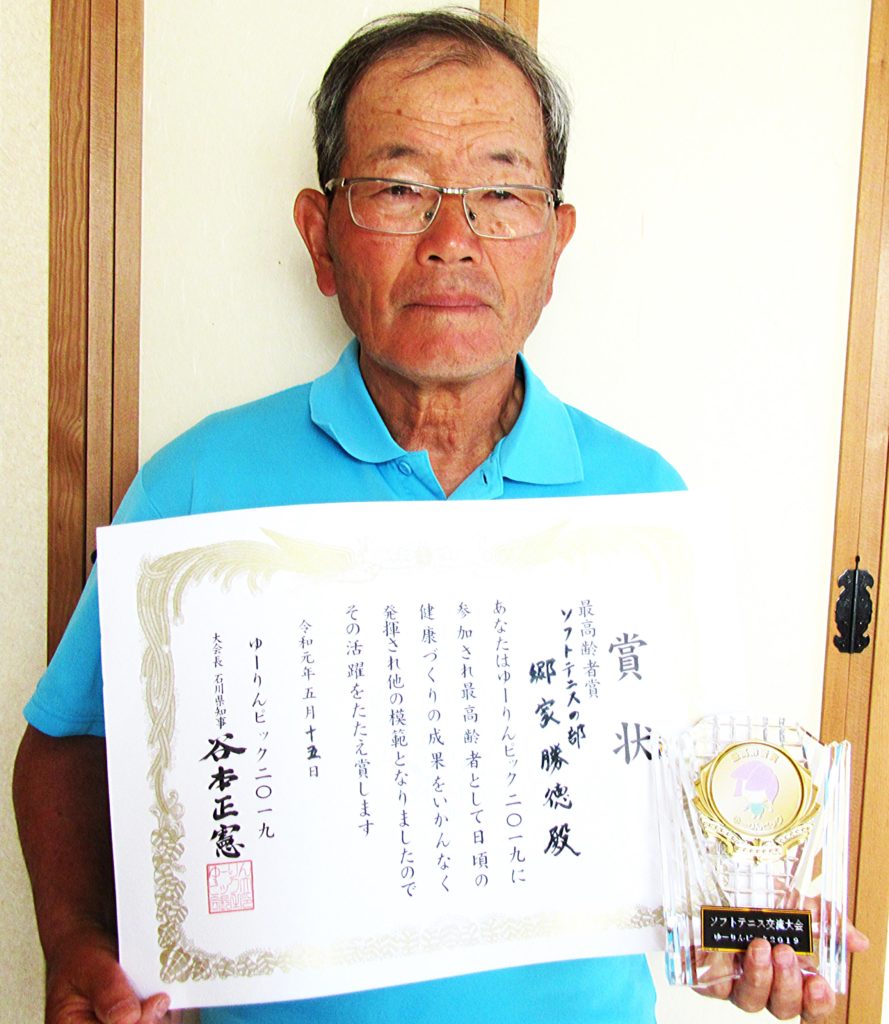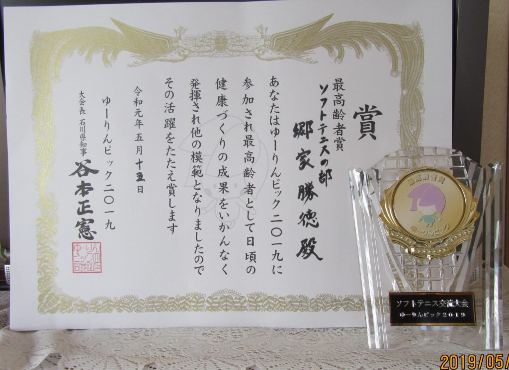 投稿日: 2019年5月16日2019年5月16日 投稿者: soft2017ゆーりんピック2019 ゆーりんぴくピック2019 ソフトテニス大会 日時:5月15日(水) 場所:西部緑地公園テニスコート 結果:北國新聞による 男子70歳以上女子60歳以上全国大会予選 干場三郎(野々市)・谷内忍(穴水)が優勝、県代表になる。 他の部門の結果 この大会の開会式で、郷家勝徳が最高年齢賞をもらう。