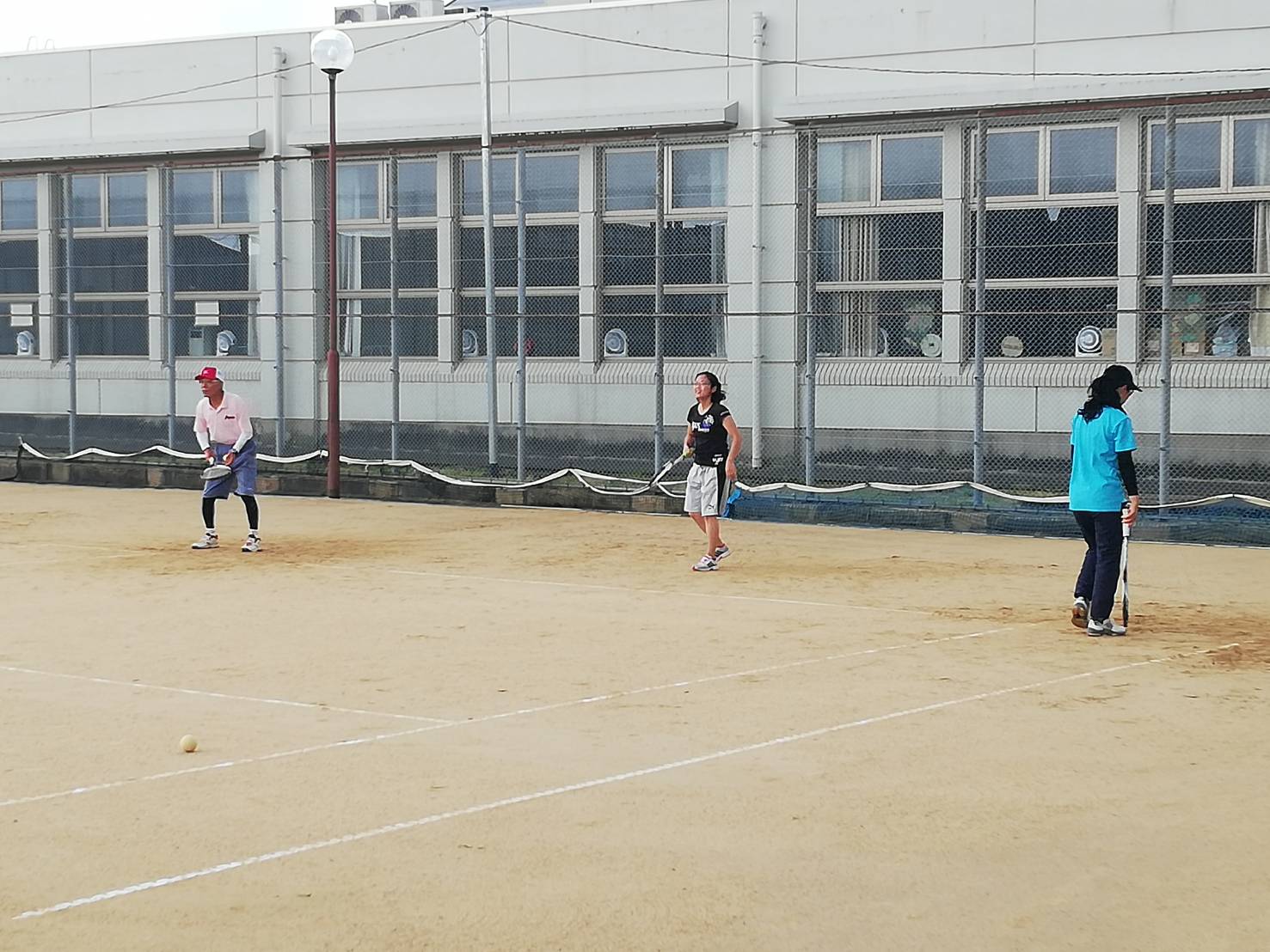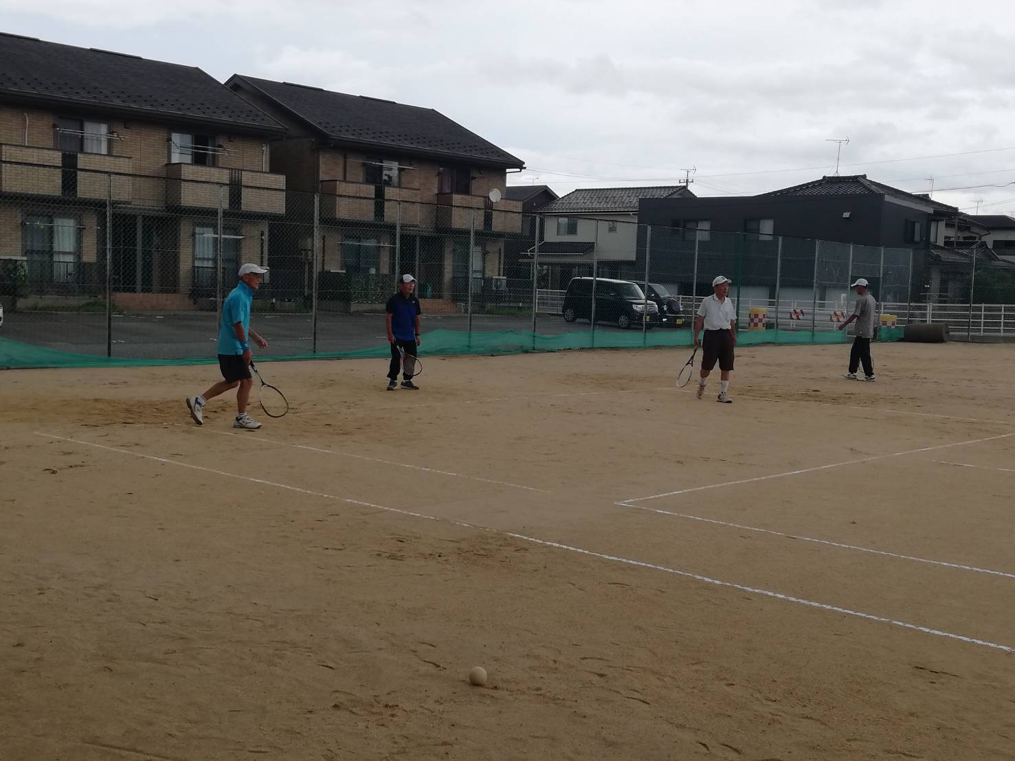 今日も朝方まで雨が降っていたが、8時ころ止んだ。そんな状態で、コートが使えそうになかったが、8時半頃見に行くと安江、藤田、新田がコートの水取をしており、使える状態になっていた。私は、一旦家に帰り、身支度して、コート整備に加わった。まさに、執念で使える状態にしたといっていい、その後、砂入れ、ローラー掛けをして、いつもの時間には、乱打ができた状態になった。段階で来ていたのは、最初の3人と金瀬戸、大杉が、ローラー掛けを手伝っている。いつものことではあるが、苦労様です。最終的にはラインの連絡をしたため、いつものメンバーが集まってきた。来た人、安江、藤田、新田、郷家、大杉、金瀬戸、竹田、米田、福田久美、室崎、山崎、畔柳、北本、大畑 昼過ぎ、再度、降雨で終わる。