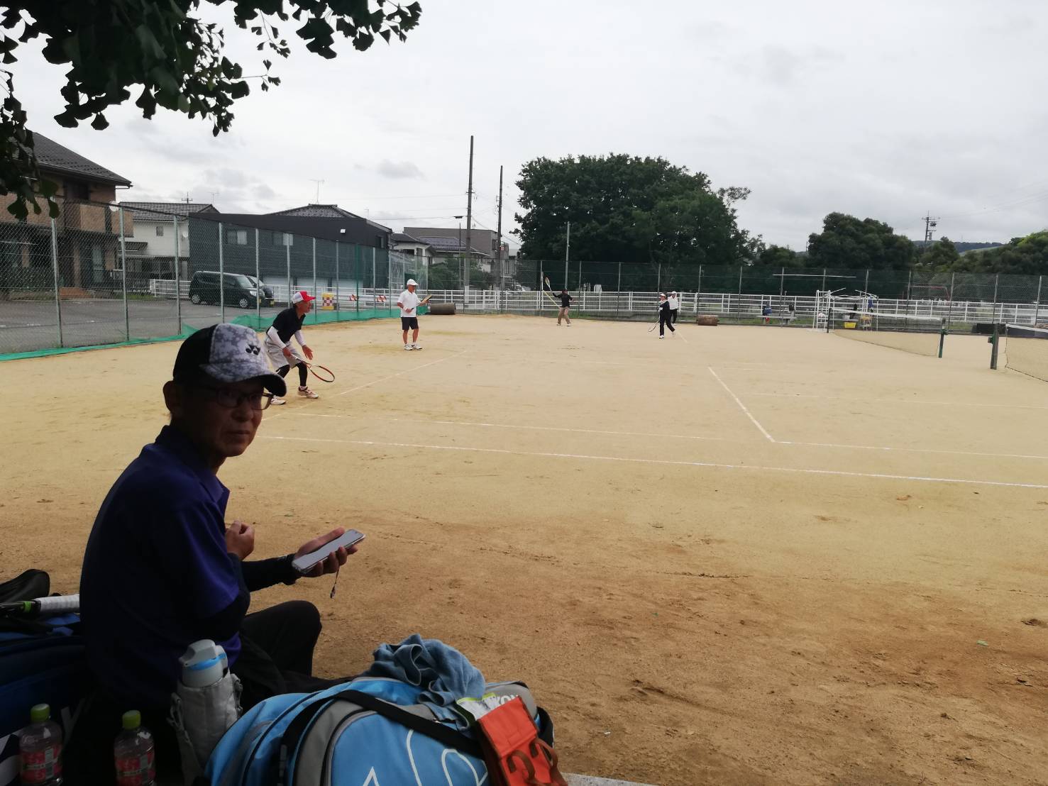 今日は昨日より、雨の状態がひどく、テニスは無理だろうと思っていたら、コートから、水取りしているという情報が入る。コートに行ってみると安江、山崎がコートの水取をして、ほぼ完了している状態、その後、ラインで知らせたこともあって、人が集まってきたので、ローラ掛けしたあと、練習を開始した。日曜日ということもあって、そこそこ人が集まってきた。来た人:安江、山崎、新森、本間、大畑、前野、大杉、藤田、室崎、畔柳、郷家