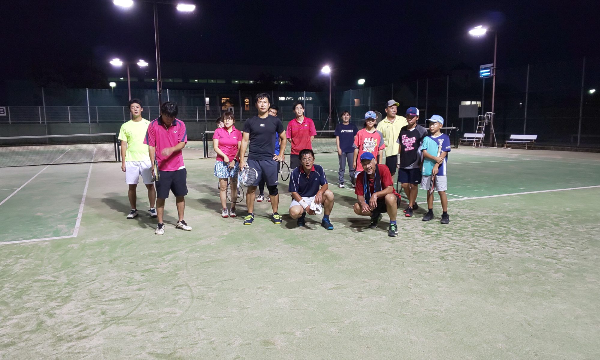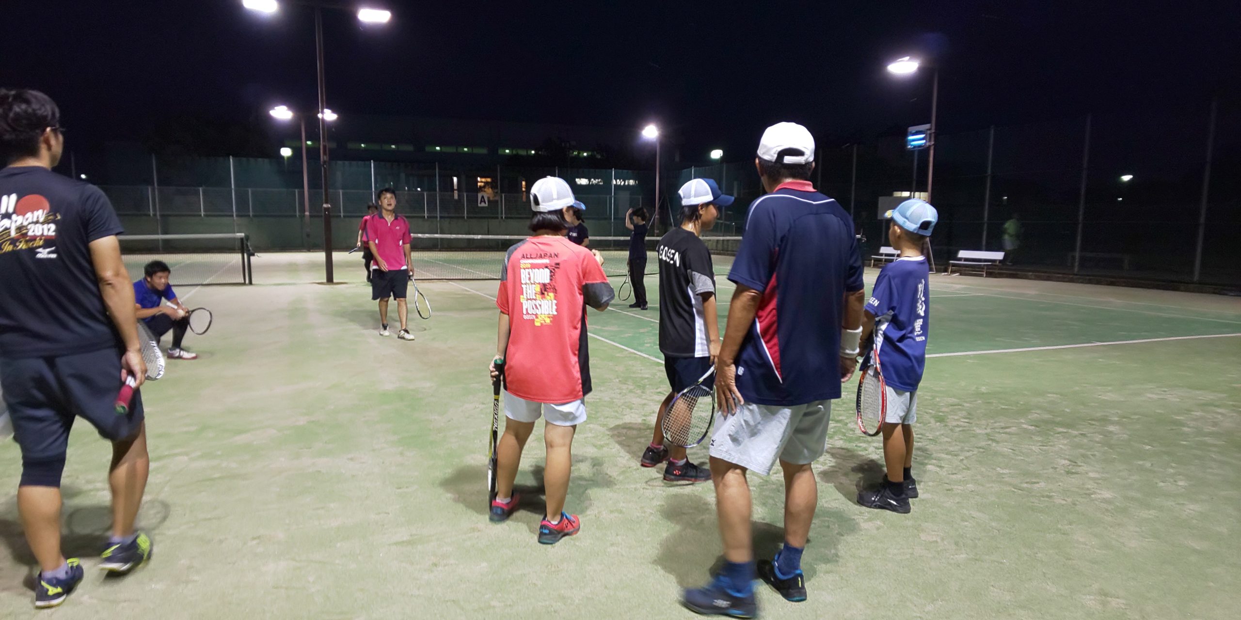 ナイター練習、今日は雨は無し、来た人:畔柳、大杉、郷家、浦、金瀬戸姉・弟、南条、白川夫妻、村田、山本、川端、武部、新田、服部、西元、市村