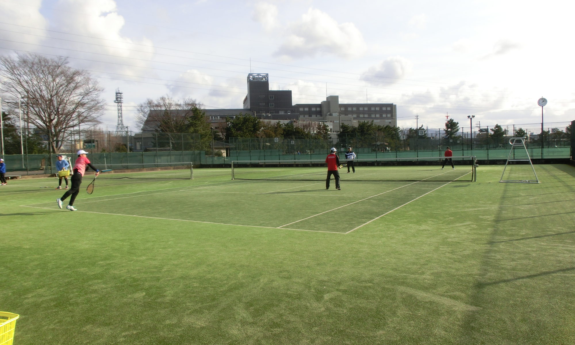 朝から晴れ間が出てきた。三納コートに、9時半過ぎに顔をだすと大杉、新田、森親子が練習をしていた。その後、本間が来て私も練習に加わる。最後は、新森が来る。11時過ぎから、ゲームを始める。