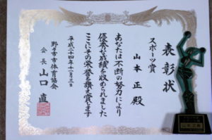 山本正は 日本マスターズ2011石川大会 出場により、スポーツ賞を受賞した。